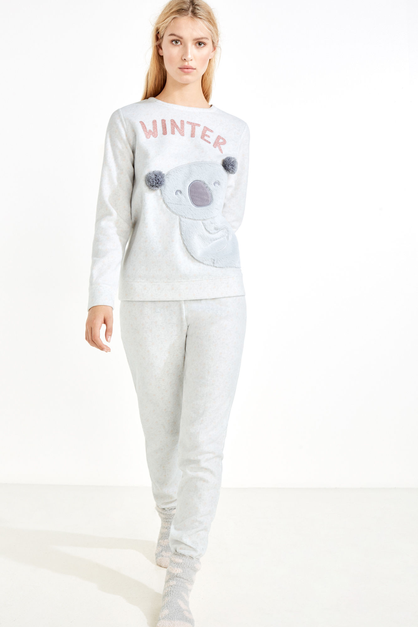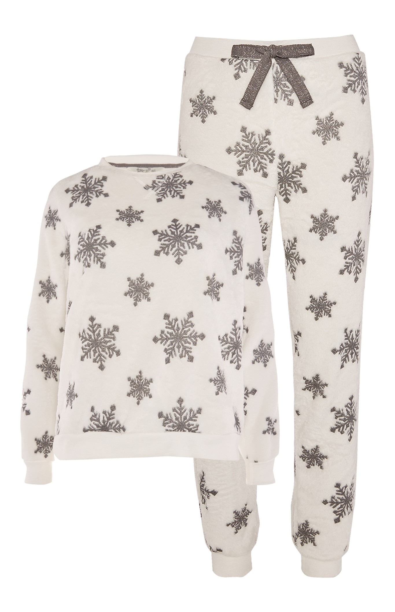 Pijama de peluche con bordados de nieve plateada de Primark 15,99€