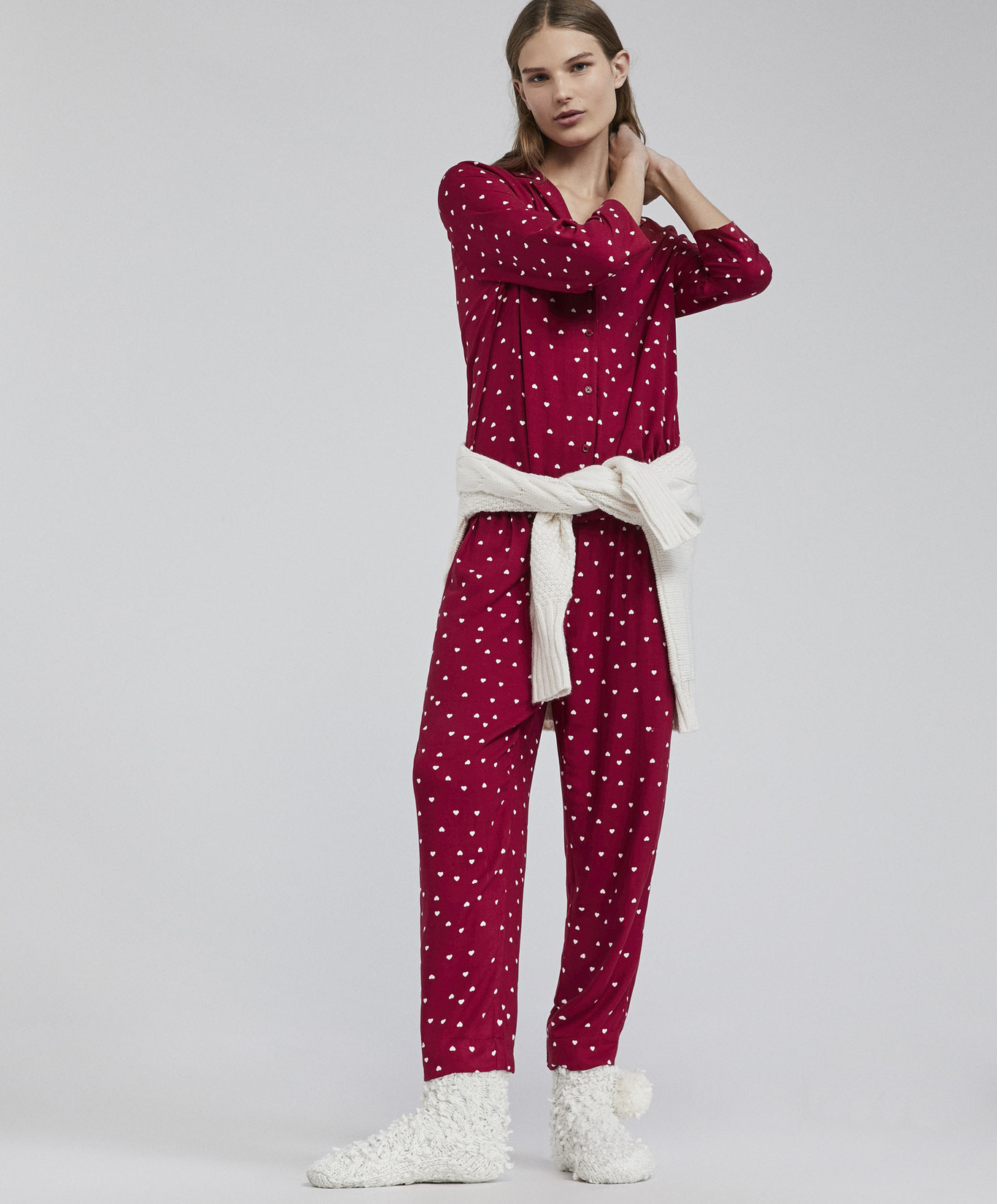 Pijama rojo con estampado de corazones de Oysho 38,98€