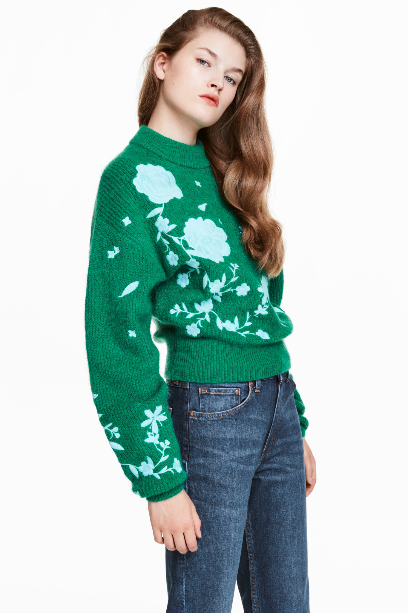 H&M firma el jersey de lana de moda y parece una prenda exclusiva de algún diseñador. En lana verde y flores bordadas en azul cielo, esta prenda hecha en mohair te va a conquistar. Como no podía ser de otra manera, ya está agotado. Si la esperanza es lo último que se pierde estaremos atentas esperando a que vuelva.