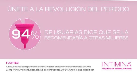 Según una encuesta dirigida por Intimina a 1.000 mujeres, de entre 18 y 50 años, sobre los productos utilizados en su periodo, comienza a haber un mayor uso de la copa menstrual entre las mujeres españolas. En este sentido, un 62% asegura haber elegido este método de protección por su practicidad y un 46% por ser higiénica y ecológica – se reduce drásticamente el deshecho de tampones y compresas que dañan el medio ambiente por los componentes de plástico que contienen –.