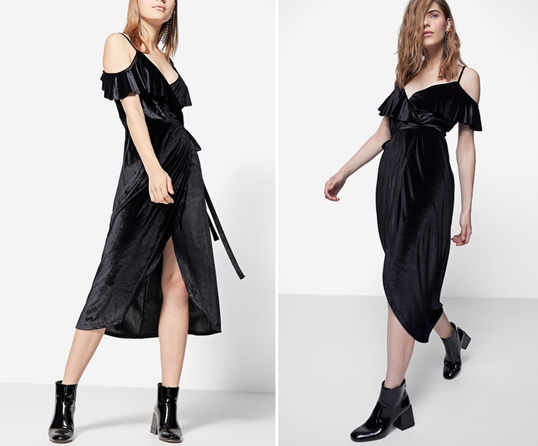 Cambiando el raso por el terciopelo y el color mostaza por el negro, Stradivarius nos presenta este modelo con un parecido más que razonable. Su precio rebajado marca 12,99 euros, lo cual es perfecto para todas aquellas que quieran inspirarse en la presentadora pero sin afectar seriamente su bolsillo.