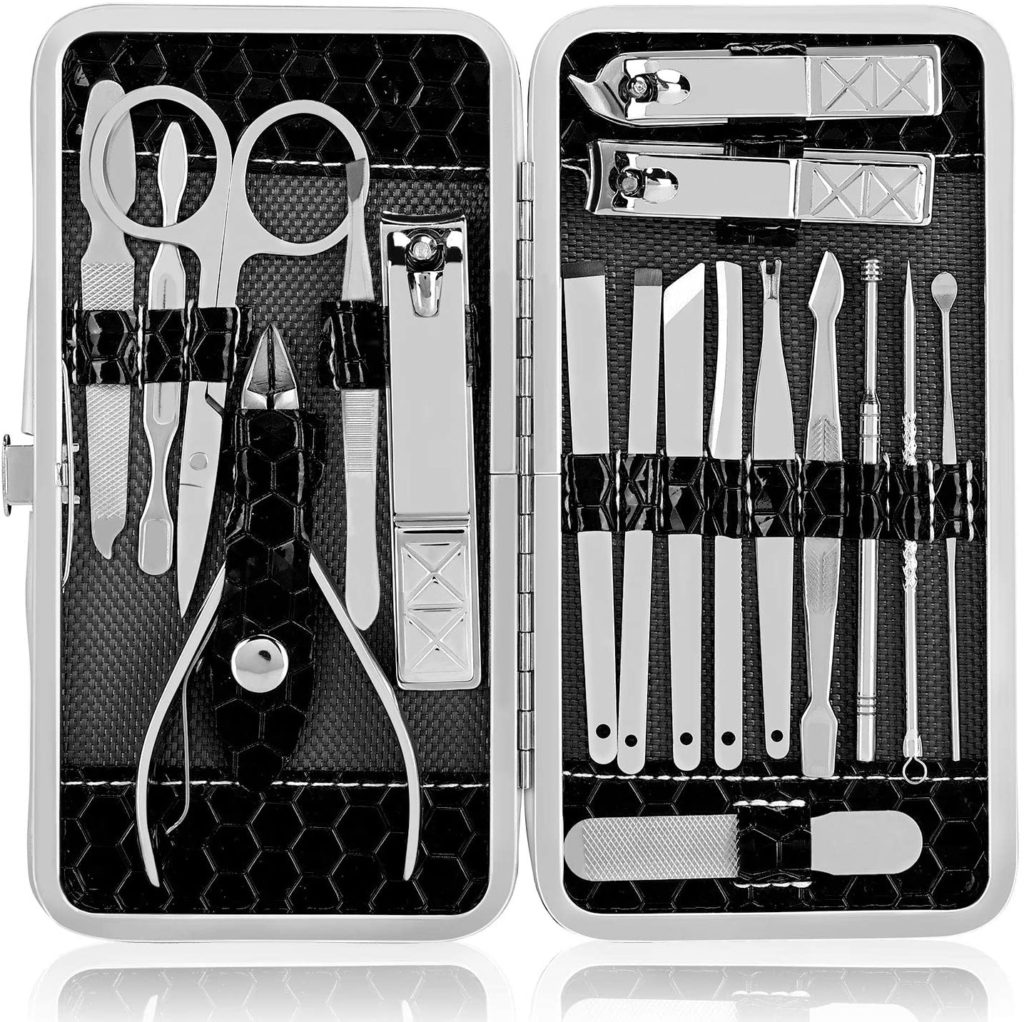 Para tener las uñas a punto no es necesario contar con una gran tecnología, sino que se puede recurrir a accesorios tradicionales. Este set cuenta con 18 herramientas de acero inoxidable para hacer la manicura y la pedicura y cuidar el rostro. Entre otras cosas, incluye varios cortaúñas, unas tijeras, una lima, un raspador, una pinza doble y una aguja para el acné.