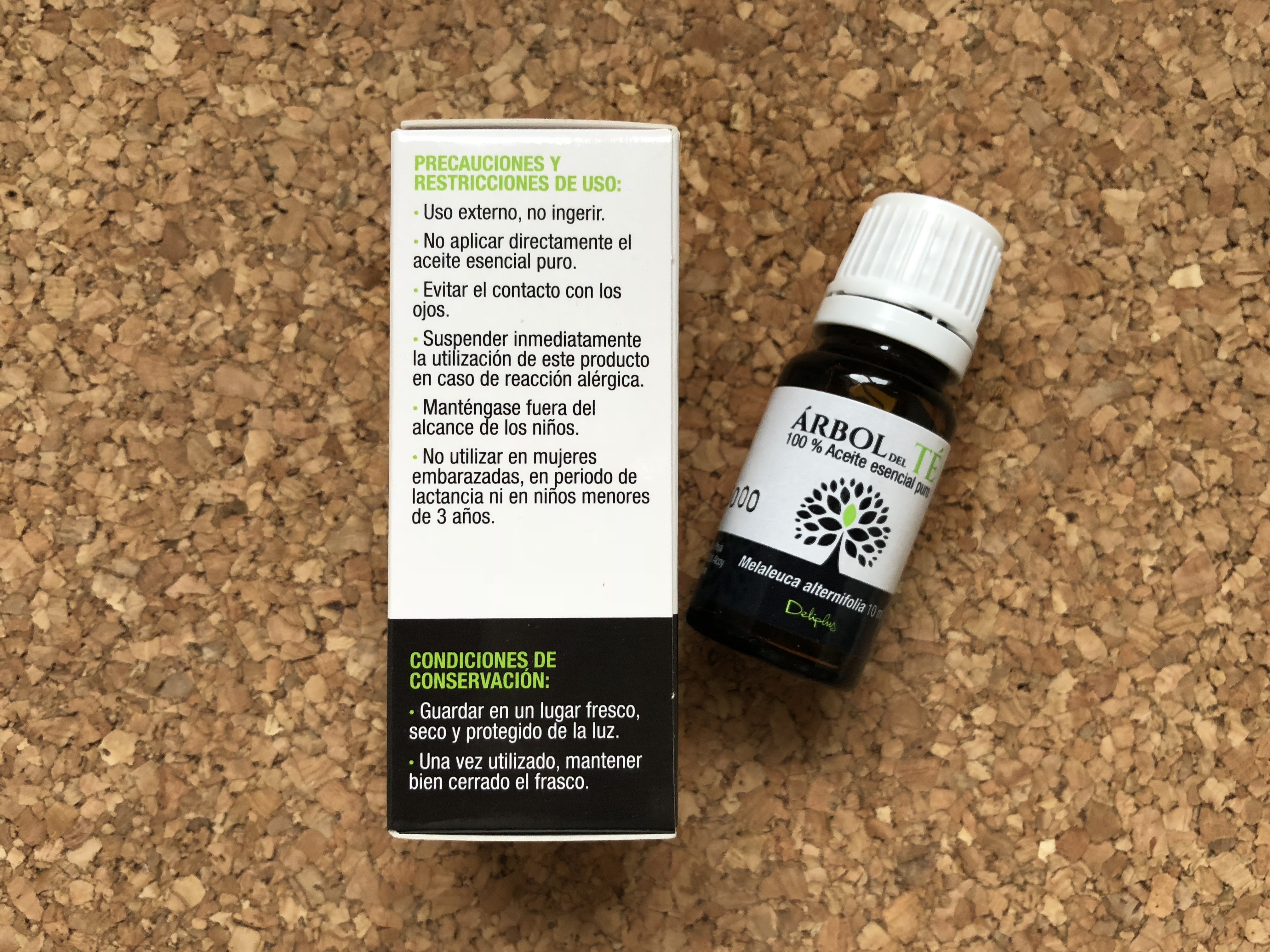 Sus ingredientes son Melaleuca Alernifolia, limonene, linalool y geraniol, por lo que todo indica que nos encontramos con un aceite de calidad, y en su caja especifica todas las contraindicaciones de este aceite esencial.